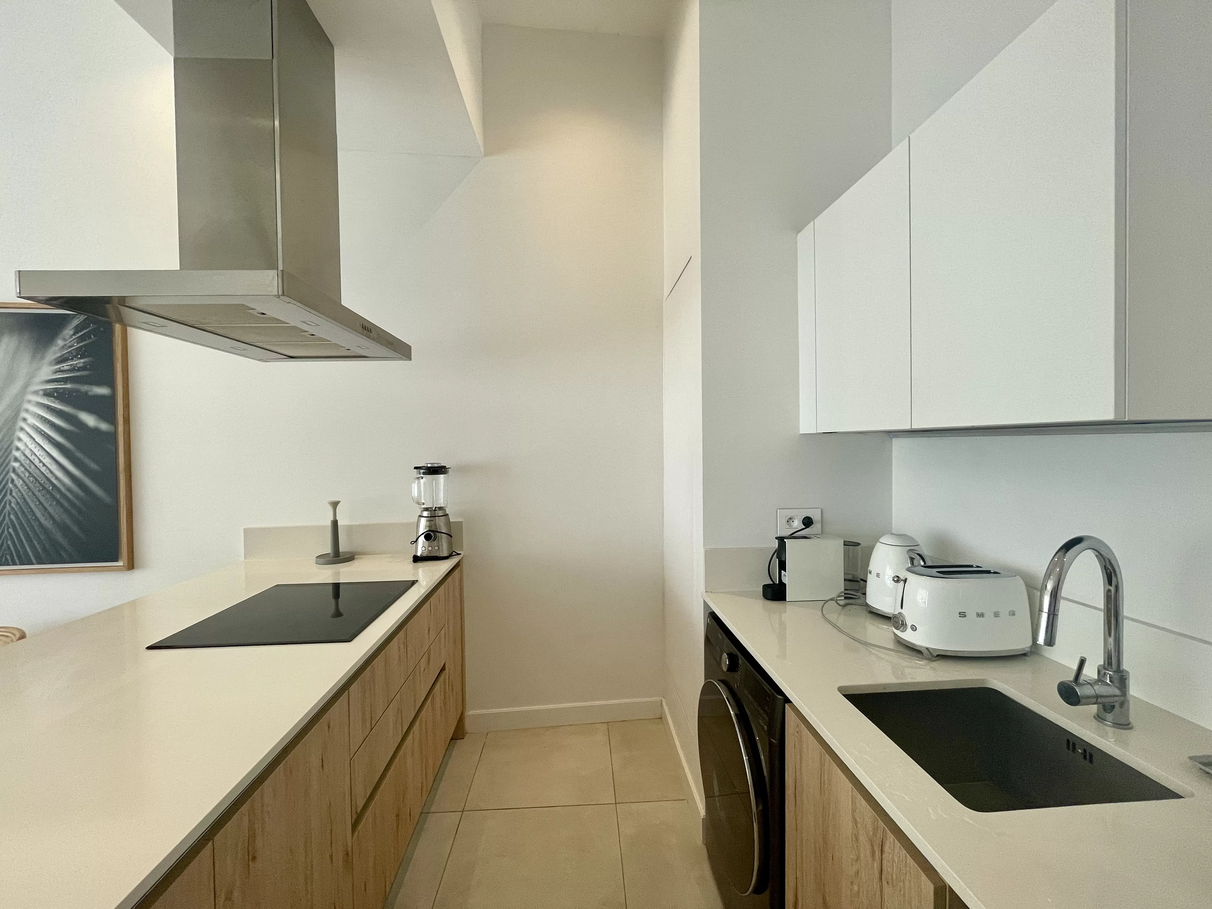 Automatic Ice and Water Dispenser, Double Refrigerator/Freezer, Nespresso Machine, Microwave, Electric Hob, Dishwasher, Sandwich Maker, Toaster, Kettle, Cooking Utensils, Cutlery & Crockery
