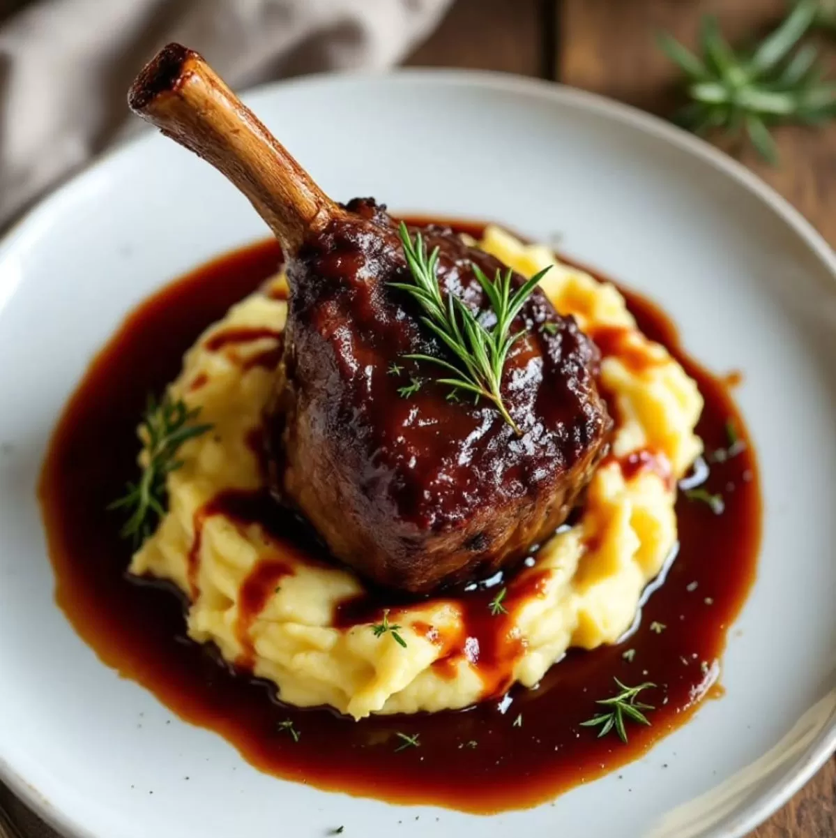 Slow Cooked Lamb Shanks with Fork-mashed Potato, Sautéed Garlic Vegetable & Asparagus