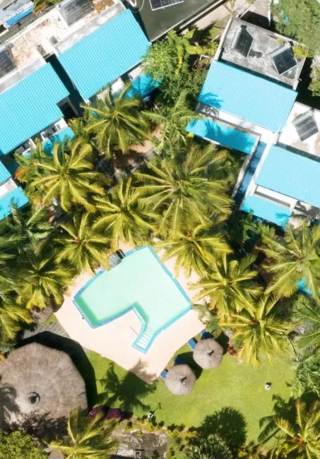 Le Grand Bleu Hotel is located in the north-western part of the island, just a 5-minute walk from the Trou aux Biches coastline. The hotel offers an affordable yet peaceful escape with spectacular views of the nearby lagoon.