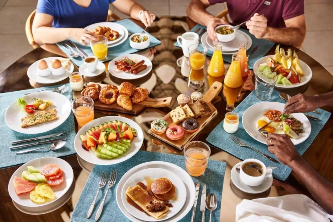 - Fresh pastries, fruits & international dishes